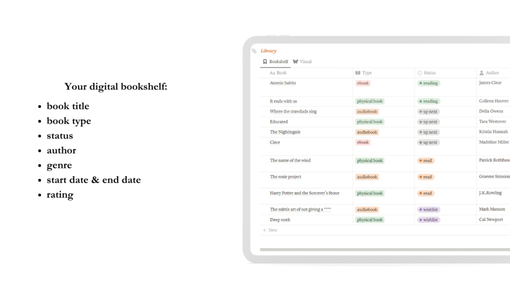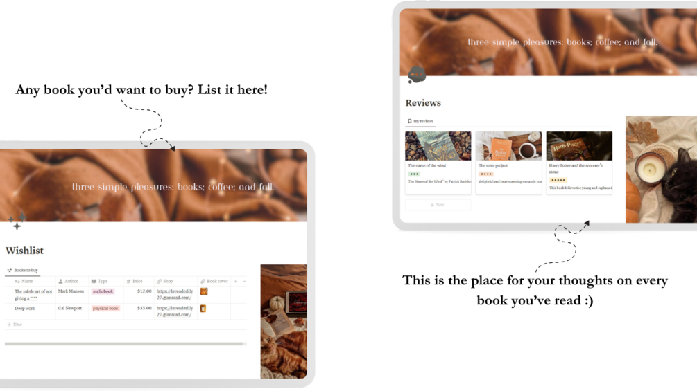 ♡ Stay organized : streamline your reading life with a comprehensive system that keeps all your reading-related information in one centralized location