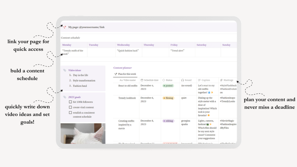 Tiktok content planner - notion template