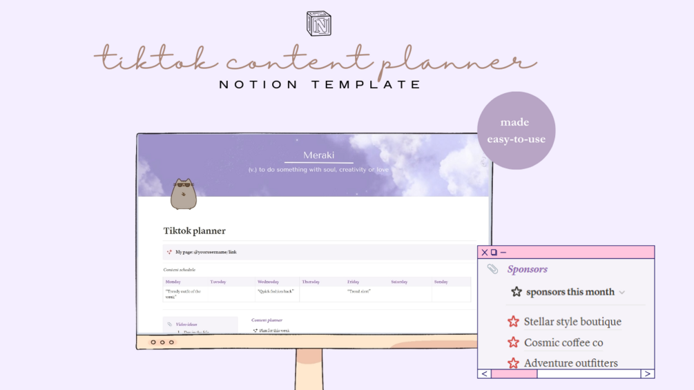 Welcome to Tiktok planner Notion template! ✨ Seamlessly designed for creators, this template is a game-changer, offering a structured approach to content creation